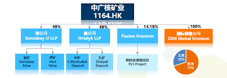 中廣核礦業的主要業務是核能企業使用的天然鈾資源的開發與貿易。公司目前持有資產包括:
